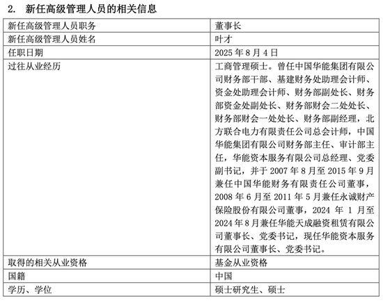此番董事长职务交接,除常规任期届满因素外,亦被视为公司寻求战略优化与结构调整的重要节点。新任董事长叶才新同样出身“华能系”,其长期担任华能资本相关职务,具备丰富的金融管理与控股型资本平台经验,外界普遍关注其上任后是否将对公司战略方向作出系统性调整。