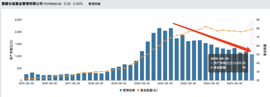 Wind数据显示,截至2025年二季度,景顺长城混合型基金规模已由2021年6月末的2151亿元下降至1071亿元,缩水幅度超过五成。