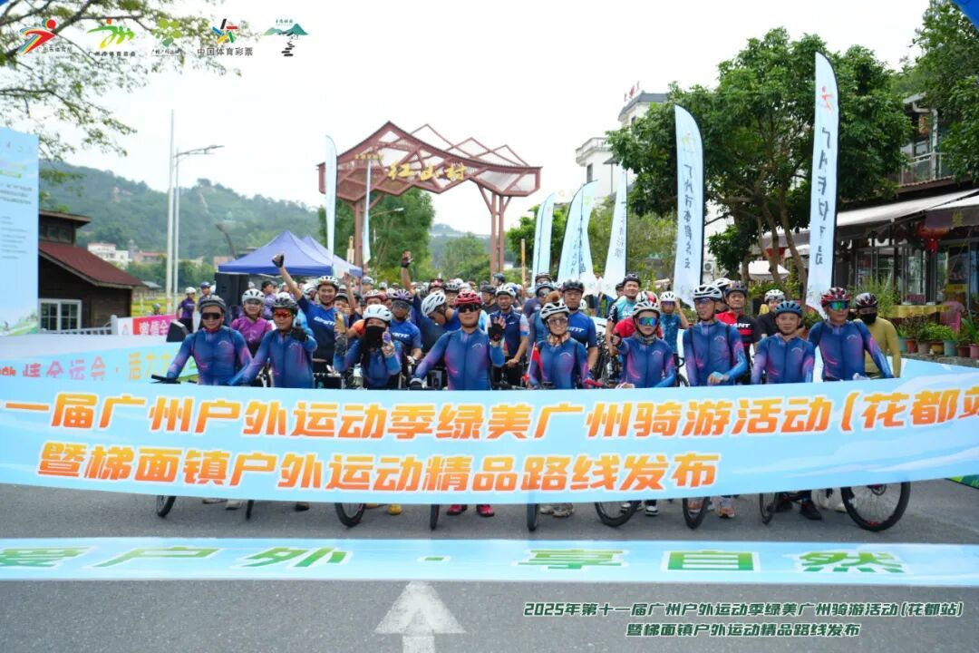 10月26日,2025年第十一届广州户外运动季核心活动 ——“爱户外・享自然”绿美广州骑游活动(花都站)在梯面镇红山村盛大启幕,400余名骑行爱好者在秋日山野间共奏运动与自然和谐共生新乐章。活动同时发布了8条梯面镇户外运动精品线路。